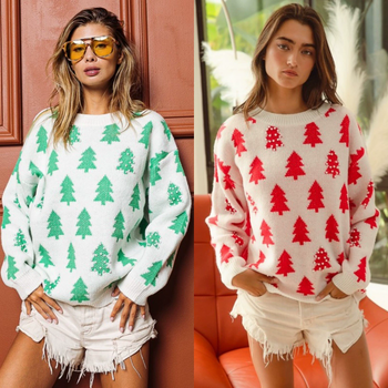 נשים pullover הסוודר חג המולד עץ לכה חרוזים רגועה בכושר ירידה בכתף לסרוג העליון