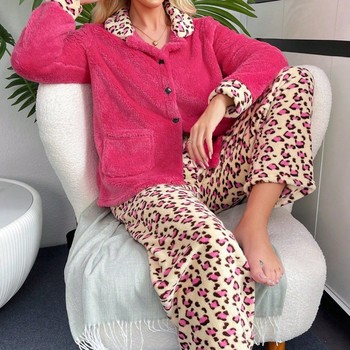נשים פיג 'מה סט flush flannel הדפסה שרוול ארוך מכנסיים העליון שני חלקים והלבשת שינה עם כיסים